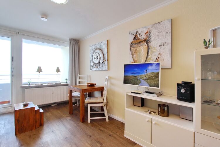 Kleine, aber sehr feine Einzimmerwohnung in der 6. Etage im Haus Metropol mit herrlichem Blick über den Strand und die Nordsee. Wohn-/Schlafraum mit vorgelagertem Westbalkon und Balkonmöbeln. In dieser Wohlfühloase stehen ihnen Einzelschrankbetten, eine Couch sowie ein Essplatz mit 2 Stühlen an Fenster zur Verfügung. Der Designfussboden in Holzoptik ist nicht nur hygienisch, sondern bietet auch Vorteile für Hausstauballergiker. Das Badezimmer verfügt über eine Dusche und einen Fön. In der Einbauküche im Flur mit Mikrowelle, Ceranfeld und zusätzlicher Senseo Kaffeepad Maschine können sie sich selbst verpflegen. Zur technischen Ausstattung gehört: ein moderner Flachbildfernseher, ein Blueray Player und ein Radio mit CD Spieler. Der WLAN Hotspot (WEG Haus Metropol - Passwortfrei - ohne Gewähr) steht ihnen kostenfrei zur Verfügung. Die Größe dieser Nichtraucherwohnung beträgt ca. 25 m².