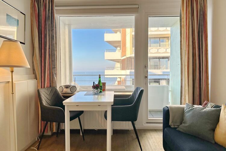 1-Zimmer-Ferienwohnung im 7. Stock des "Haus am Meer". Die Nichtraucher-Wohnung hat ca. 25qm und verfügt über einen kombinierten Wohn-/Schlafraum mit Podest-Doppelbett (Breite 1.40 m, 2 Matratzen, Einstiegshöhe ca. 70 cm), 2-Sitzer- Couch und Eßtisch am Fenster, Flat-TV, Radio mit CD-Player, Westbalkon mit teilweisen Meeresblick, Küchenzeile im Flur mit Mikrowelle und Geschirrspüler, Duschbad/WC. W-LAN ( ohne Gewähr ) im Haus steht zur freien Verfügung. Der Wohn-/Schlafraum ist mit Laminat ausgelegt, der Flur-/ Küchenbereich sowie das Bad ist gefliest. Tierhaltung ist nicht gestattet. PKW-Stellplatz nur auf Bestellung. Bettwäsche und Handtücher sind zur Anreise aufgezogen.