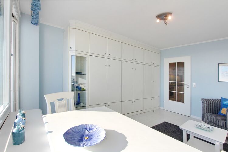 Hübsche Einzimmerwohnung in der 8. Etage im Haus Metropol zur Landseite mit herrlichem Weitblick über die Insel und die Stadt. Bei klarem Wetter auf das nordfriesische Wattenmeer bis zum Festland. Der kombinierte Wohn-/Schlafraum mit vorgelagertem großen Ostbalkon verfügt über Einzelschrankbetten, einen Essplatz mit 2 Stühlen am Fenster sowie eine Sitzgruppe. Holzfußboden verleiht dem Raum Gemütlichkeit. Das moderne Badezimmer hat eine Dusche. Im Flur befindet sich eine Einbauküche mit Backofen in der sich sie sich bequem selbst verpflegen können. Zur technischen Ausstattung gehört: ein schwenkbarer Flachbildfernseher mit integriertem DVD Player, Radio mit IPod Station, Telefon. Ein freies WLAN Netzwerk (WEG Haus Metropol - Passwortfrei - ohne Gewähr) steht ihnen kostenfrei zur Verfügung. Wohnungsgröße 30 m².