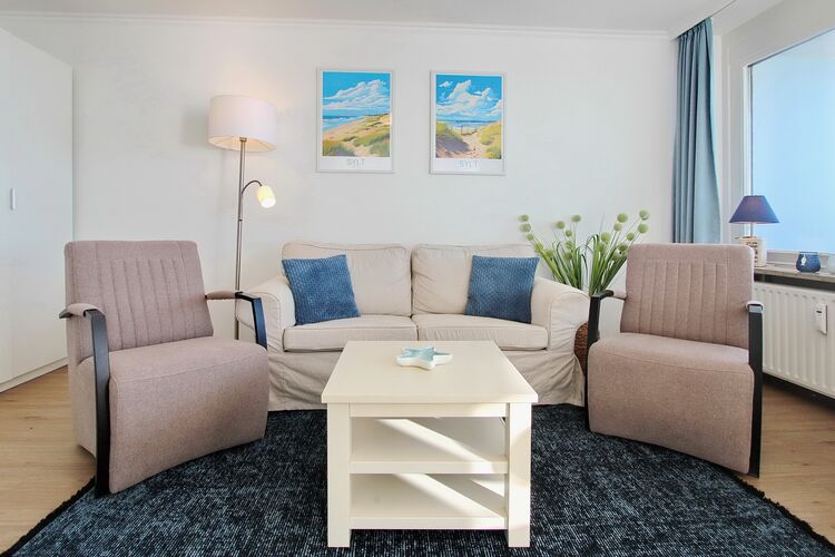 Der helle Wohn- und Schlafbereich vereint Komfort und Gemütlichkeit: Ein feststehendes Doppelbett, ein einladendes Sofa für zwei Personen sowie zwei Sessel sorgen für entspannte Stunden. Der Essplatz direkt am Fenster eröffnet Ihnen bereits beim Frühstück eine wunderschöne Aussicht. Vom Wohnraum aus gelangen Sie auf den großzügigen Westbalkon mit Balkonmöbeln – perfekt, um die frische Meeresluft und die Abendsonne zu genießen.