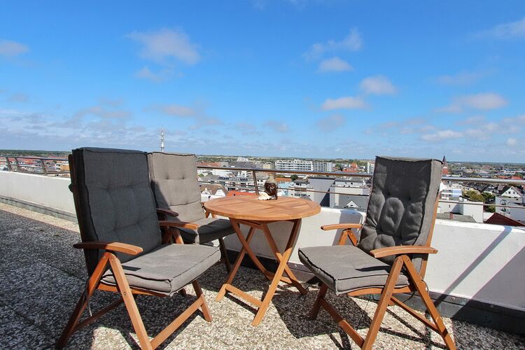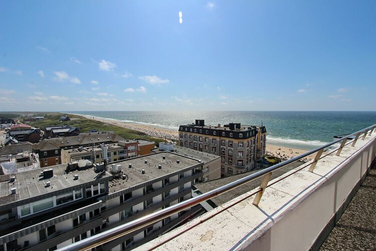Penthouse-Wohnung in der 8. Etage des Haus am Meer mit herrlichem Weitblick über Sylt, auf den Strand und das Meer. Individuell eingerichteter Wohnraum mit großer Süd-/Ost Dachterrasse und Balkonmöbeln. Essplatz mit 4 Stühlen (unter anderem mit zwei Panton Chairs), bequeme Couch und Fernsehsessel. Das größere Schlafzimmer verfügt über ein Doppelbett, einen Kleiderschrank und einen zusätzlichen Flachbildfernseher. Das kleinere Schlafzimmer hat ein Einzelbett, einen Kleiderschrank und auch einen Flachbildfernseher. Das Tageslichtbadezimmer ist im Betondesign gehalten und hat eine Dusche, ein Bidet und einen Fön. In der offenen Küche mit Backofen, Induktionsherd und Geschirrspüler können sie sich selbst verpflegen. Eine Waschmaschine, Wäschespinne, ein Bügeleisen und Bügelbrett sind ebenfalls vorhanden. In der Wohnung wurde Holzfußboden verlegt. Zur technischen Ausstattung dieser Wohnung gehören: 3 Flachbildfernseher, eine Panasonic Micro Hifi Anlage mit CD Player und ein DVD Player. Kostenfrei können sie den WLAN HOT Spot (WEG Haus am Meer - Passwortfrei - ohne Gewähr) nutzen. Das Penthouse ist nur über eine Treppe erreichbar. Der Aufzug geht bis zur 7. Etage. Wohnungsgröße: ca. 60 m².