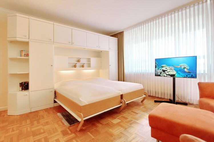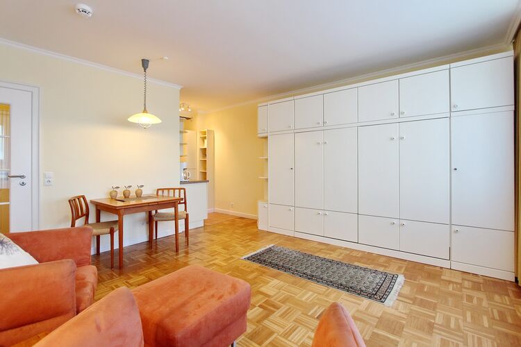 Hell und freundlich eingerichtete 1 Zimmer Wohnung in der 1. Etage zur Westseite. Diese Nichtraucherwohnung in unmittelbarer Strandlage ist mit Einzelschrankbetten, einem Essplatz für 2 Personen sowie einer komfortablen, ansprechende Sitzgruppe ausgestattet. In der offenen Küchenzeile im Wohnbereich (mit Mikrowelle und zusätzlicher Nespressomaschine) können sie einfach und schnell kleine Mahlzeiten oder ein köstliches Frühstück zubereiten. Im hellen Badezimmer gibt es eine Dusche und einen Handtuchtrockner. Den verglasten Westbalkon (Wintergarten) mit modernen Loungemöbeln können sie auch bei schlechtem Wetter nutzen. Diese Wohnung verfügt über einen modernen Flachbildfernseher von Panasonic. Wohnungsgröße: ca. 40 m².