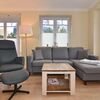 ebenerdig, mit ca. 55qm. Im hellen Wohnraum ist eine große, gemütliche Sofaecke, ein Glastisch, eine Kompaktanlage mit Radio u. CD-Player, ein Glasschrank mit SAT-Flat-TV sowie ein Essplatz für 4 Personen. Sie haben einen direkten Zugang zur Südterrasse mit Terrassenmöbel. Die kleine offene Küche mit Ceranfeld, Geschirrspüler, Kühlschrank mit Gefrierfach, Mikrowelle, Kaffeemaschine, Wasserkocher und Toaster bietet alles, um sich selbst zu versorgen.