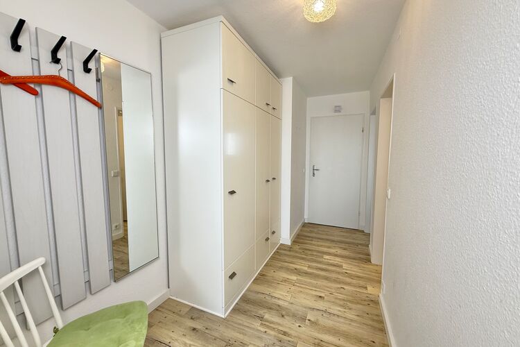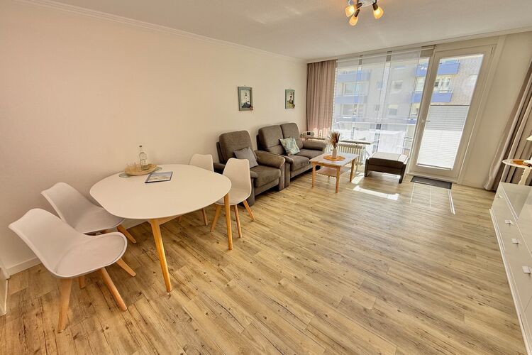 Diese helle 2-Zimmer-Nichtraucher-Ferienwohnung (ca. 48 m²) in der 3. Etage bietet Platz für bis zu 4 Personen und begeistert durch ihre sonnige Ausrichtung zur Südseite. Ideal für alle, die zentral wohnen und ihren Urlaub komfortabel gestalten möchten. Vom Flur mit Garderobe und praktischen Einbauschränken gelangen Sie in das Wohnzimmer mit Zugang zum Südbalkon, die offene Küchenzeile, das Schlafzimmer sowie in das Duschbad/WC.