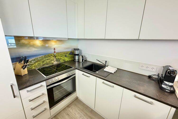 Die moderne Küche ist komfortabel mit Geschirrspüler, Cerankochfeld, Backofen, Kühlschrank mit 3*-Gefrierfach, Kaffeemaschine, Nespresso Kapselmaschine, Wasserkocher, Toaster und Mixer ausgestattet.