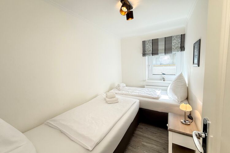 Das große Schlafzimmer ist mit einem bequemen Doppelbett (1,80 x 2,00 m) mit Einzelmatratzen und das kleine Schlafzimmer mit zwei über Eck stehenden komfortablen Einzelbetten ausgestattet.