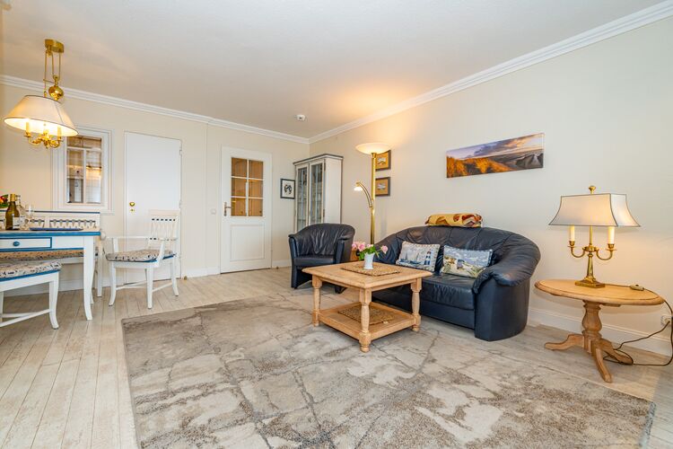 Exklusive 1,5-Zimmer-Nichtraucher-Ferienwohnung, ca. 48 qm, in der 6. Etage zur Seeseite mit herrlichem Meerblick und Westloggia (Nachmittagssonne, mit Balkonmöbeln und Auflagen) für max. 3 Personen.