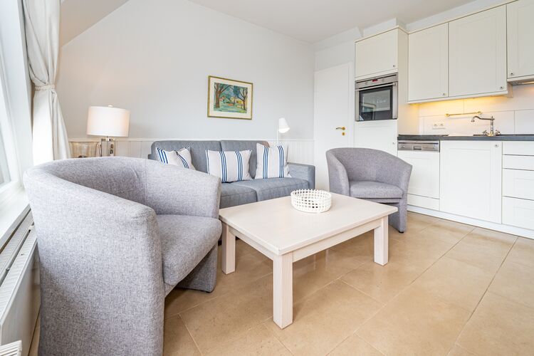 Vom Vorflur mit Garderobe gelangen Sie in das geflieste Wohnzimmer mit offener Küchenzeile, das separate Schlafzimmer sowie in das moderne Duschbad/WC. Das geschmackvoll eingerichtete Wohnzimmer verfügt über ein komfortables 2-Sitzer-Sofa (mit Schlafgelegenheit für eine Person, klappbare Lehnen), zwei Sessel, einen separaten Essplatz sowie einen Flachbild-TV, ein CD-Radio, WLAN (ohne Gewähr) und eine Telefonflatrate für kostenfreie Telefonate ins deutsche Festnetz. Vom Wohnbereich haben Sie direkten Zugang zum großzügigen Sonnenbalkon mit herrlichem Ausblick. Die offene Küchenzeile ist mit einem Geschirrspüler, einem Ceranfeld mit 4 Kochfeldern sowie einem Kühlschrank mit 3-Sterne-Gefrierfach ausgestattet. Kaffeemaschine, Wasserkocher und Toaster gehören zur Grundausstattung.