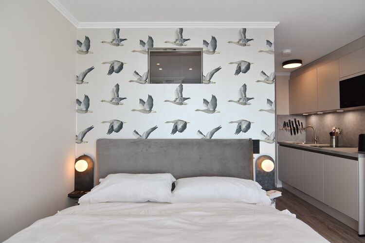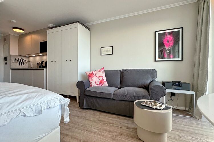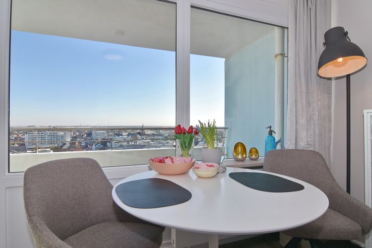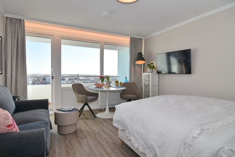 Exklusives 1-Zimmer-Apartment, ca. 30qm, im 10. OG zur Landseite im Haus Metropol. Kombinierter Wohn-/Schlafraum mit Doppelbett (160x200), Sofa, Essplatz am Fenster, großer TV, Einbauschränke. Ostbalkon mit Balkonmöbeln. Küchenzeile im Flurbereich mit 2-Platten-Ceranherd, Geschirrspüler, Kühlschrank mit Gefrierfach. Duschbad-WC. Nichtraucher-Wohnung. Tierhaltung ist nicht gestattet. Bettwäsche und Handtücher sind zur Anreise aufgezogen. Ein PKW-Stellplatz kann kostenpflichtig zugebucht werden.