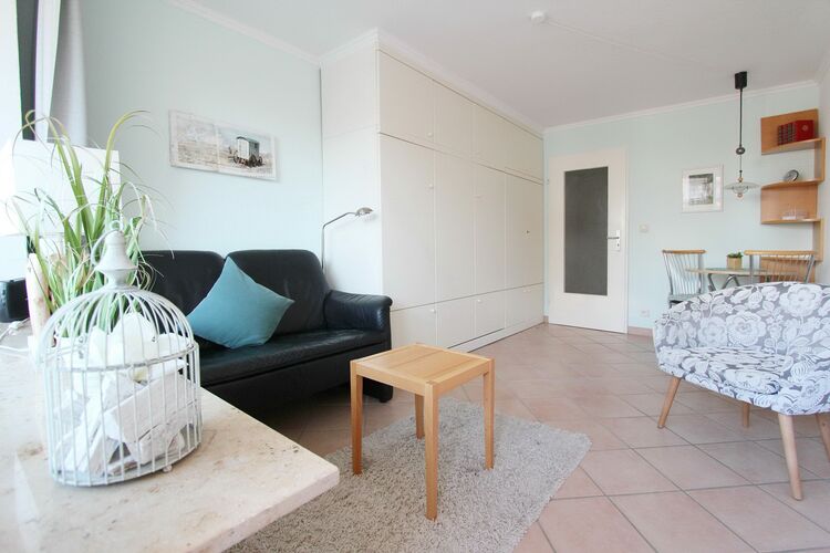 Im Holsteinischen Haus im Obererdgeschoss befindet sich diese hübsche Einzimmerwohnung im Innenstadtbereich von Westerland. In wenigen Minuten sind sie in der Fußgängerzone und an der Promenade, der Bäcker ist gleich um die Ecke. Der hell und freundlich eingerichtete Wohn-/Schlafraum verfügt über ein Doppelschrankbett, einen Essplatz mit 2 Stühlen, sowie eine Ledercouch mit Sessel. Der Balkon zur Westseite verfügt über Balkonmöbel und Auflagen. In der Wohnung wurde hochwertiger Fliesenboden verlegt. Um sich selbst zu verpflegen gibt es im Flur eine Einbauküche mit 2 Platten Ceranfeld. Das Badezimmer hat eine Dusche. Zur technischen Ausstattung dieser Nichtraucherwohnung gehört: ein Flachbildfernseher und ein Radio. Wohnungsgröße: ca. 25 m². Ein Pkw-Stellplatz ist inklusive und steht Ihnen in der Tiefgarage mit Doppelparksystem zur Verfügung. Die ausgehängten Betriebsanleitungen für die Nutzung der Garagen Nr. 5 sind Bestandteil des Mietvertrages (nicht für alle PKWs geeignet).