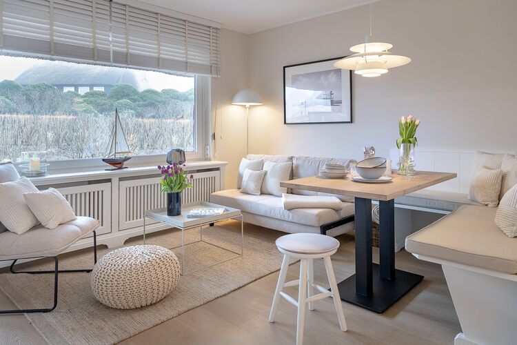 Willkommen in der Friesenkoje, Ihrer modernen 65 qm Ferienwohnung in einer der begehrtesten Lagen von List. Die stilvoll eingerichtete Wohnung verbindet nordische Eleganz mit zeitgemäßen Wohnkomfort und bietet alles, was Sie für einen erholsamen Inselurlaub brauchen. Die helle, offen gestaltete Wohnküche bildet das Herz der Wohnung. Hochwertige Materialien, moderne Geräte und ein gemütliche Wohn und Essbereich laden dazu ein, gemeinsame Momente zu genießen - vom entspannten Frühstück bis hin zum Kochabend im kleinen Kreis. Die Friesenkoje verfügt über zwei separate Schlafzimmer sowie über zwei moderne Duschbäder mit WC, so dass auch Familien oder befreundete Paare genügend Privatsphäre haben. Ein besonderes Highlight ist die private Sauna, die nach einen Tag am Meer für tiefe Entspannung sorgt. Der schön angelegte Garten ist ein echtes Juwel. Hier können Sie die Sylter Sonne genießen, lesen, entspannen oder den Tag mit einem Glas Wein ausklingen lassen. Eine Waschmaschine mit integriertem Trockner ist ebenfalls vorhanden.