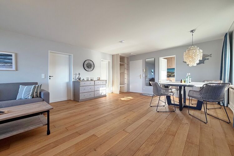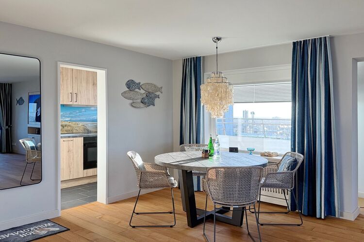Erstklassig sanierte und renovierte 2-Zimmer-Wohnung in Südwestlage mit 3 sonnigen Balkonen für max. 3 Personen. Ca. 88 m², Die Wohnung befindet sich 5. OG zur Meerseite im Haus "Metropol". Großes Wohn- und Esszimmer mit Zugang zu 2 Balkonen. Eckcouch mit Schlaffunktion (140x200 cm) und Sessel. Esstisch mit Insel- und Meerblick gen Süden, Flat-TV, Radio, Internet (ohne Gewähr), uvm. Separate Küche mit Geschirrspüler, Backofen mit Mikrowellenfunktion und Induktionskochfeld. Großes Schlafzimmer mit Westbalkon und Doppelbett (180 x 200), Einbauschrank, Nachtschränken und Flat-TV. Badezimmer mit großer Dusche, Waschtisch und WC. Zugang sowohl vom Schlafzimmer als auch vom Wohnzimmer möglich. Garderobe im Eingangsbereich. Die Wohnung verfügt über diverse, maßgefertige Massivholzeinbauten sowie einen Massivholzeichenfußboden im Bereich des Wohn- und Schlafzimmers. Tierhaltung ist nach Anmeldung kostenpflichtig möglich. Ein Garagen-Stellplatz kann bei Buchungsabschluss zu € 15,--/Nacht dazu gebucht werden. Waschküche und Fahrradkeller befinden sich im Haus. Bettwäsche und Handtücher sind zur Anreise aufgezogen.
