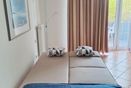 1-Zimmer-Ferienwohnung im roten Haus, Nichtraucher-Whg., ca. 39m², 1. OG. Wohn-/Schlafraum mit Südbalkon, Doppelbett, Essplatz, 2-Sitzer-Sofa (ausziehbar/als Doppelliege nutzbar) und Sessel, Kabel-TV, Küchenzeile mit Geschirrspüler, Mikrowelle, Nespressomaschine, Duschbad/WC. Das Apartment ist komplett gefliest. Internetanschluß (ohne Gewähr). Waschküche und Fahrradkeller im Nebenhaus "Mauritius". Pkw-Stellplatz kann kostenpflichtig hinzugebucht werden. Bettwäsche und Handtücher sind zur Anreise aufgezogen! Tierhaltung ist gestattet und muss angemeldet werden.