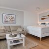 Wunderschön renovierte 1-Zimmer-Wohnung im 5. OG im Haus Sylter Welle mit freiem Blick auf das Meer. Geräumiger Wohn-/ Schlafraum mit Doppelbett (2x90x200), Kleiderschrank, Kofferablage, Sitzecke bestehend aus 2 Sesseln, Essplatz, offene Küche mit Kombigerät Backofen / Mikrowelle, Geschirrspüler, Induktionsherd mit 2 Kochfeldern. Das Duschbad verfügt über einen stilvollen Handtuchtrockner, beleuchtetem Spiegel und Kosmetikspiegel. Der Westbalkon ist möbliert und lädt zum Verweilen ein. Rauchen und Tierhaltung sind hier nicht gestattet. Bettwäsche und Handtücher sind zur Anreise aufgezogen. Ein PKW-Stellplatz kann kostenpflichtig zugebucht werden.