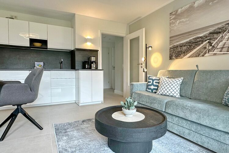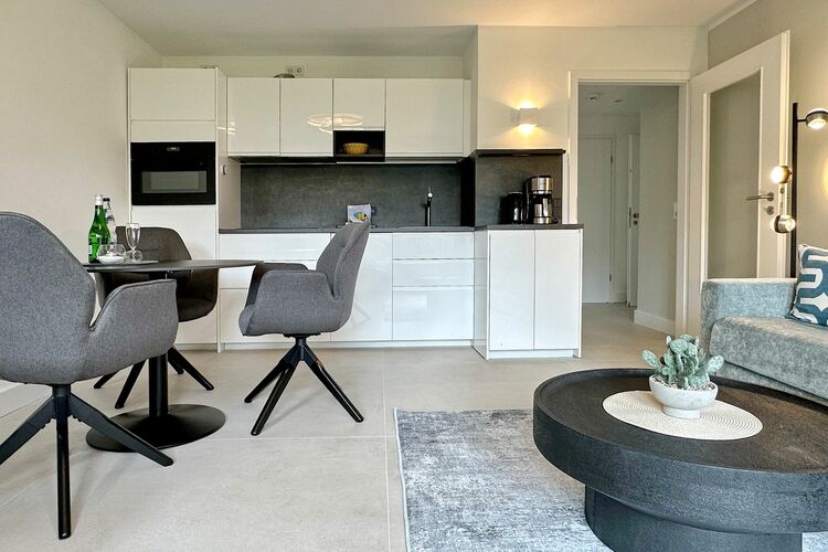 Die Wohnanlage "Olympia" bietet eine zentrale Lage in kurzer Entfernung zur Promenade, dem Badestrand und dem Meer. Auch die Fußgängerzone ist nur wenige Gehminuten entfernt. Die 2-Zimmer-Wohnung wurde im Jahr 2025 renoviert und ist für 2 Personen geeignet. Sie hat eine Größe von ca. 43 m² und besteht aus einem Wohn- und Esszimmer mit Couchecke, Essplatz und integrierter Küche. Die Küche ist mit einem Induktionskochfeld, einem Geschirrspüler und einer Mikrowelle mit Grillfunktion ausgestattet. Vom Wohnzimmer aus gelangt man auf die geschützte und möblierte Südterrasse. Im Schlafzimmer befindet sich ein Box-Spring-Doppelbett, Einbauschränke und ein weiterer Flat-TV. Das moderne Duschbad verfügt über ein Fenster. Im Dielenbereich befinden sich Einbauschränke und eine Garderobe für Jacken und andere Dinge. WLAN steht zur Verfügung, jedoch ohne Gewähr. Das Mitbringen von Haustieren und das Rauchen sind nicht gestattet. Bei Anreise sind Bettwäsche und Handtücher bereits aufgezogen. Die Wohnanlage verfügt über einen Schwimmbad- und Saunabereich sowie einen zusätzlichen Wellnessbereich mit finnischer Sauna, Dampfsauna und Ruhebereich. Fahrzeuge können gegen Gebühr und vorheriger Anmeldung in der Tiefgarage abgestellt werden. Eine Waschmaschine und ein Trockner stehen kostenfrei zur Verfügung. Für Fahrräder gibt es einen Abstellbereich in der Garage.