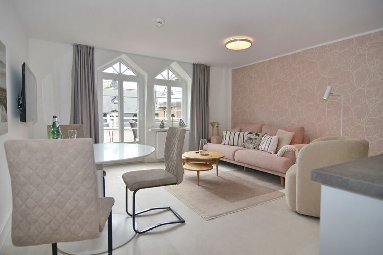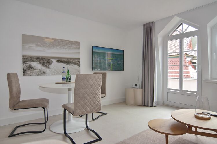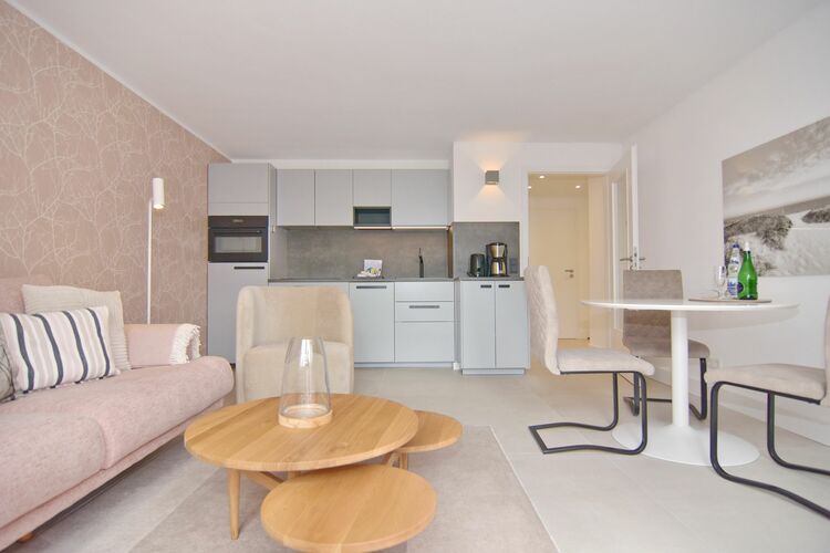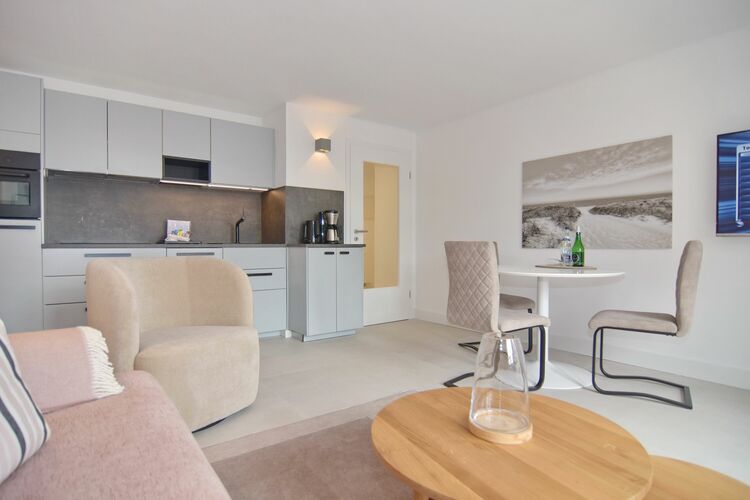 Die Wohnanlage "Olympia" bietet eine zentrale Lage in kurzer Entfernung zur Promenade, dem Badestrand und dem Meer. Auch die Fußgängerzone ist nur wenige Gehminuten entfernt. Die 2-Zimmer-Wohnung liegt im 1. Obergeschoss, wurde im Jahr 2025 von Grund auf renoviert und ist für 2 Personen ideal geeignet. Sie hat eine Größe von ca. 43 m² und besteht aus einem Wohn- und Esszimmer mit Couchecke, Essplatz und integrierter Küche. Die Küche ist mit einem Induktionskochfeld, einem Geschirrspüler und einer Mikrowelle mit Grillfunktion ausgestattet. Vom Wohnzimmer aus gelangt man auf den geschützten und möblierten Südbalkon. Im Schlafzimmer befindet sich ein Box-Spring-Doppelbett, Einbauschränke und ein weiterer Flat-TV. Das moderne Duschbad verfügt über ein Fenster. Im Dielenbereich befinden sich Einbauschränke und eine Garderobe für Jacken und andere Dinge. WLAN steht zur Verfügung, jedoch ohne Gewähr. Das Mitbringen von Haustieren und das Rauchen sind nicht gestattet. Bei Anreise sind Bettwäsche und Handtücher bereits aufgezogen. Die Wohnanlage verfügt über einen Schwimmbad- und Saunabereich sowie einen zusätzlichen Wellnessbereich mit finnischer Sauna, Dampfsauna und Ruhebereich. Fahrzeuge können gegen Gebühr und vorheriger Anmeldung in der Tiefgarage abgestellt werden. Eine Waschmaschine und ein Trockner stehen kostenfrei zur Verfügung. Für Fahrräder gibt es einen Abstellbereich in der Garage.