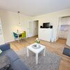 Hübsche 2-Zimmer-Ferienwohnung im Haus "Olympia III" im 2. OG mit sonnigem Südostbalkon. Ca. 50m². Nichtraucherwohnung. Wohnzimmer mit Küchenzeile mit Geschirrspüler und Mikrowelle, Doppelschlafcouch, TV und Essplatz für 4 Personen, Duschbad/WC, großes Schlafzimmer mit Doppelbett (Kinderbett passt), Flur mit Garderobe. Unter Haus 4 befindet sich das Schwimmbad mit Finnischer Sauna. Unter Haus 2 befindet sich ein separater Wellnessbereich mit Dampfsauna, Finnischer Sauna und Ruhebereich. Eine Waschküche mit Gemeinschaftswaschmaschine/Trockner ist vorhanden. Offenes W-LAN-Netzwerk steht zur Verfügung (ohne Gewähr). Bettwäsche und Handtücher sind zur Anreise aufgezogen. Ein Garagenstellplatz kann kostenpflichtig gebucht werden!