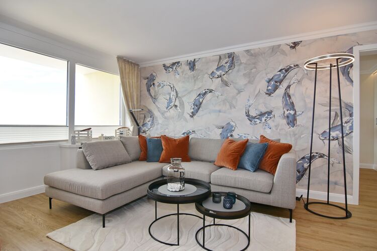 Wohnen in Bestlage! Exklusives 3-Zimmer-Apartment im 13. OG des Haus "Metropol" mit einem Süd- und 2 Westbalkonen. Genießen Sie Traumblicke auf das Meer und die Dünenkette! Ca. 88 m². Großzügiges Wohnzimmer mit gemütlicher Sitzecke, Esstisch für 4 Personen sowie TV, Stereoanlage und W-Lan (ohne Gewähr). 1 Schlafzimmer mit Doppelbett (180x200), Kleiderschrank, Flat-TV, Westbalkon und Duschbad ensuite. 1 kleineres Schlafzimmer mit 2 Einzelbetten (2x90x200) und TV, 2 Einbaukleiderschränke im Flur, separates Duschbad/WC. Separate Küche mit Backofen und Geschirrspüler. Tierhaltung und Rauchen sind nicht gestattet. Ein Garagen- oder Pkw- Stellplatz kann bei Buchungsabschluss gebucht werden. Waschküche und Fahrradkeller befinden sich im Haus. Bettwäsche und Handtücher sind zur Anreise aufgezogen.