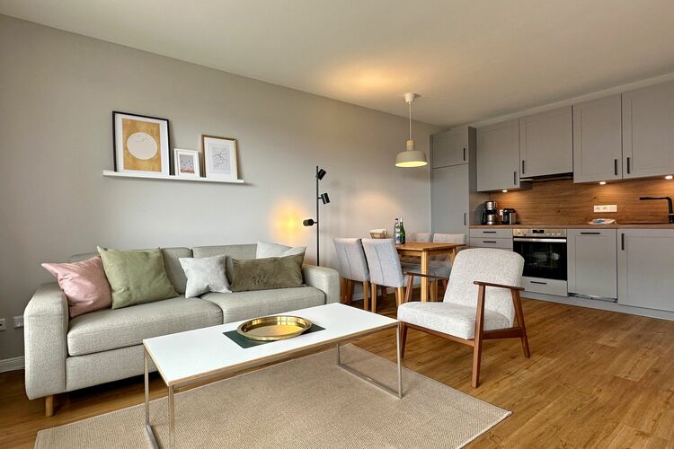 Diese im Frühjahr 2023 frisch renovierte 2-Zimmer-Wohnung befindet sich in strandnaher Lage im Haus Alice im 1.OG. Die Wohnung ist großzügig geschnitten und verfügt über einen großen Südbalkon. Das helle Wohnzimmer bietet Ihnen neben der Küche mit] mit Geschirrspüler, Backofen und Ceranherd, einen schönen Essplatz und eine Sitzgruppe bestehend aus Schlafcouch (140x200 Liegefläche) und Sessel. Vom Flur mit Garderobe gelangen Sie zum Duschbad und zum Schlafzimmer mit Doppeltbett (160x200, 2 Matratzen) und großem Kleiderschrank. Ab Mai 2025 Balkon mit Strandkorb. Zur Wohnung gehört der Pkw-Stellplatz Nr. 36-9. W-Lan (ohne Gewähr) ist vorhanden. Eine Waschküche befindet sich in der Anlage und ist über Münzautomaten zu nutzen, Fahrradständer befinden sich am Haus. Rauchen und Tierhaltung ist nicht gestattet. Bettwäsche und Handtücher sind zur Anreise aufgezogen.